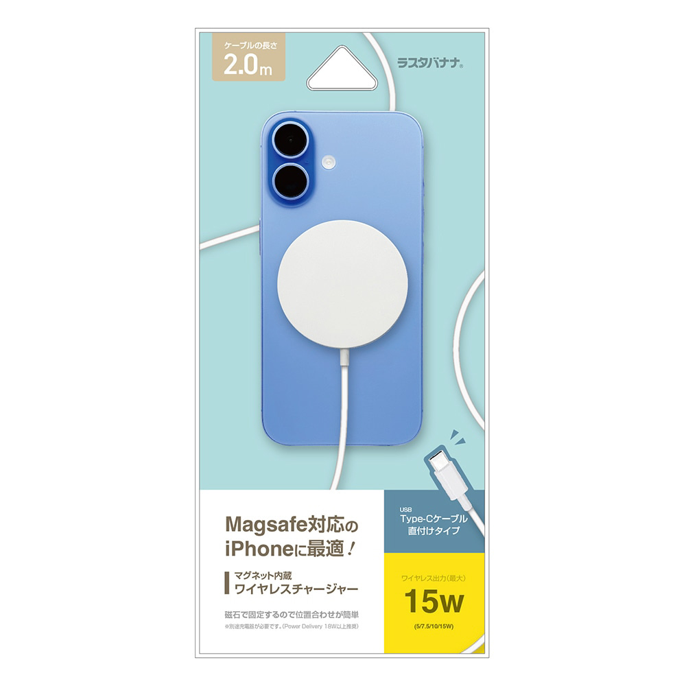 ワイヤレスチャージャー 5/7.5/10/15W 2m Type-Cケーブル直付 ホワイト R20WCC15W04WH