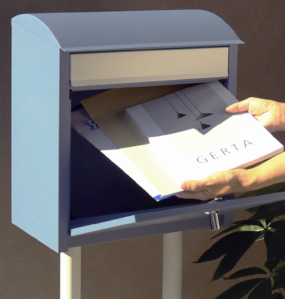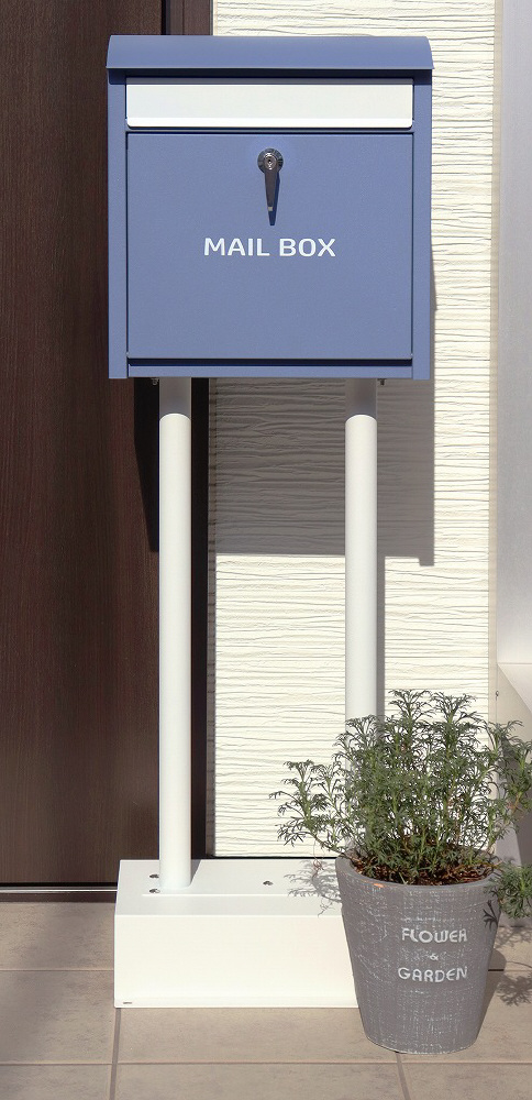 カラーは上品な色合いのワインレッドとくすんだブルーのラベンダーブルーで、脚と台座部、郵便投函口はホワイトになります。ポスト本体が特徴を持ったカラーで、玄関を綺麗に彩ります。