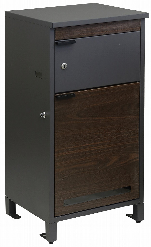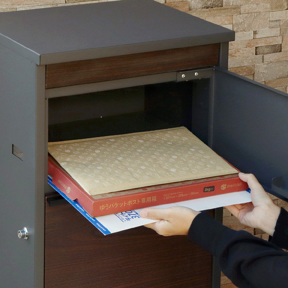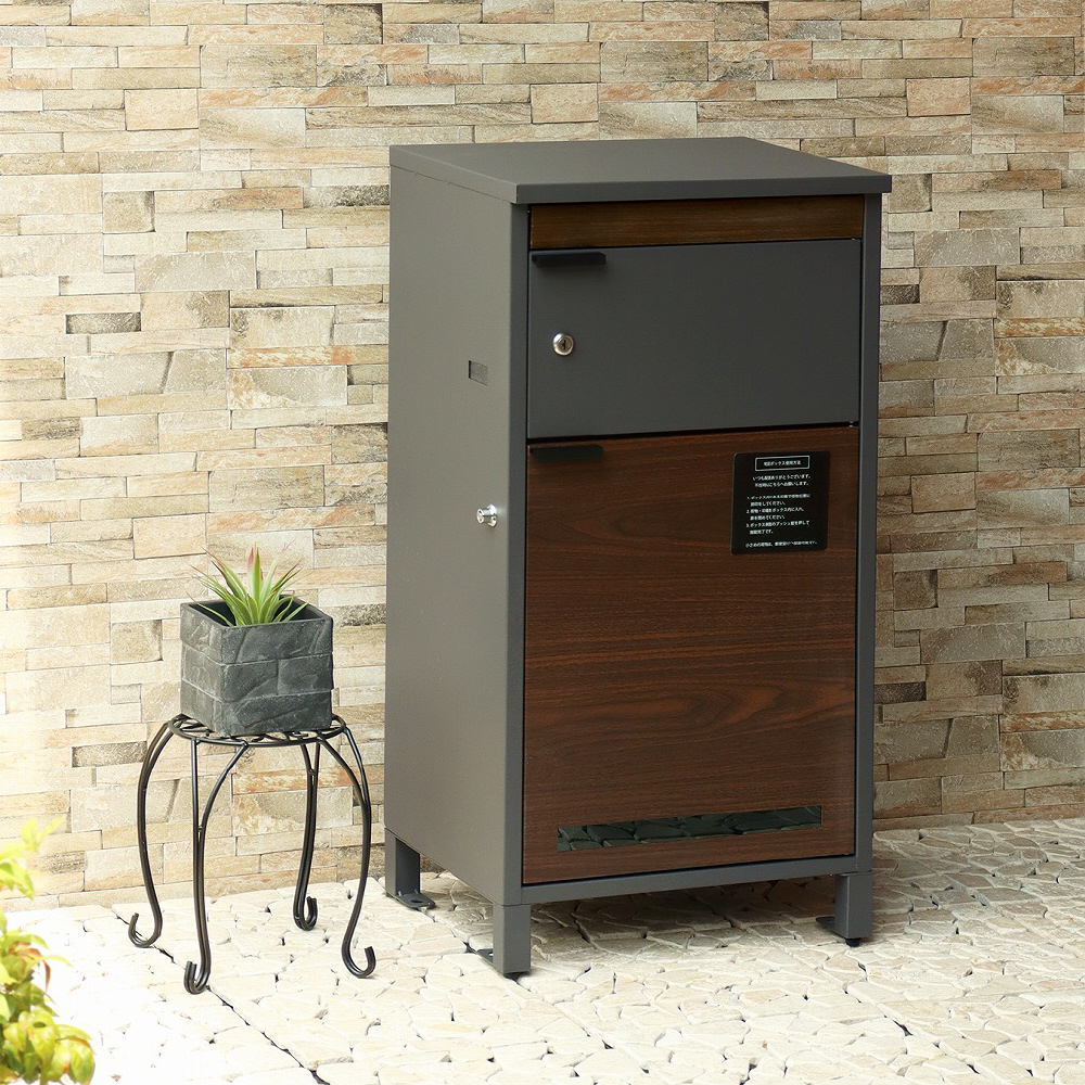 宅配ボックス付ポスト【Maisie(メイジー)】 ダークグレー/ブラウン木目 PBX057
