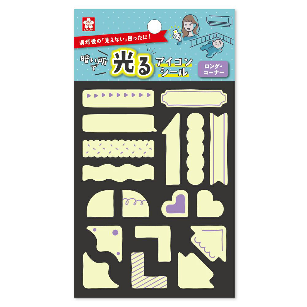 暗い所で光るアイコンシール ロング・コーナー KRHS-03