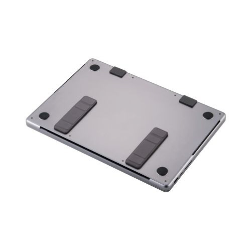 装着したまま持ち運び可能!ノートパソコンの底面に貼り付けて使用する折りたたみ式スタンドです。持ち運びの際に邪魔にならない薄型設計。サイズが小さいため、貼り位置を調節しやすく排熱口を避けて貼り付けられます。