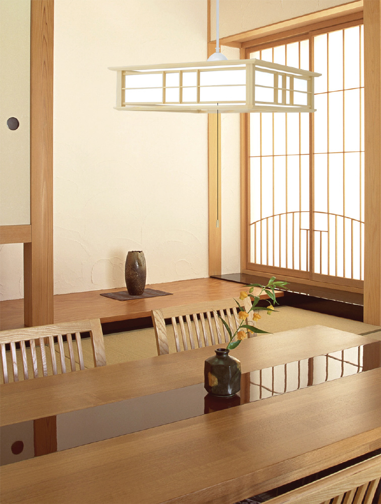 落ち着きのある木製枠が 和室を上品に照らします。