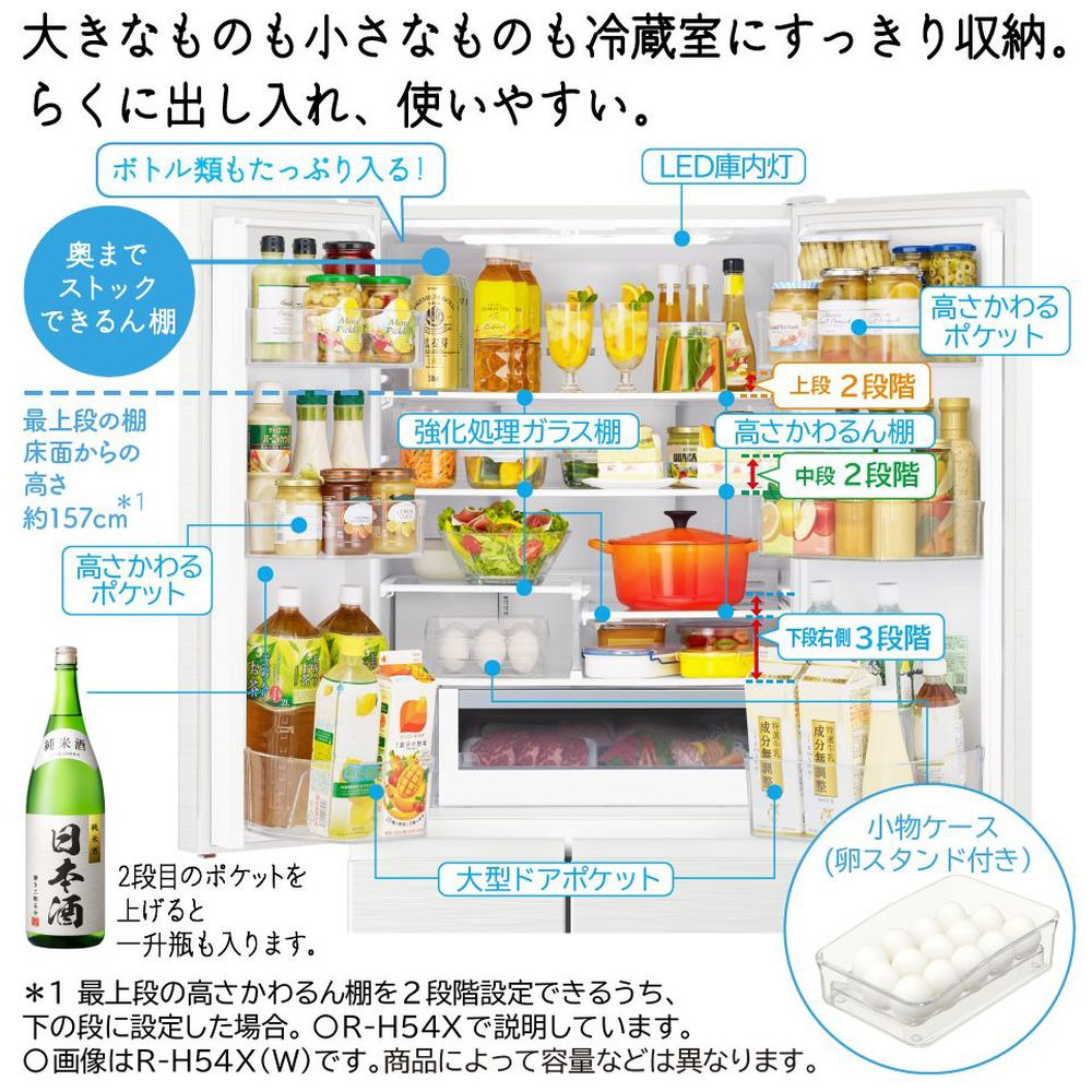 冷蔵庫 Hタイプ ピュアホワイト R-H54X-W [幅65cm /540L /6ドア /観音開きタイプ /2025年]