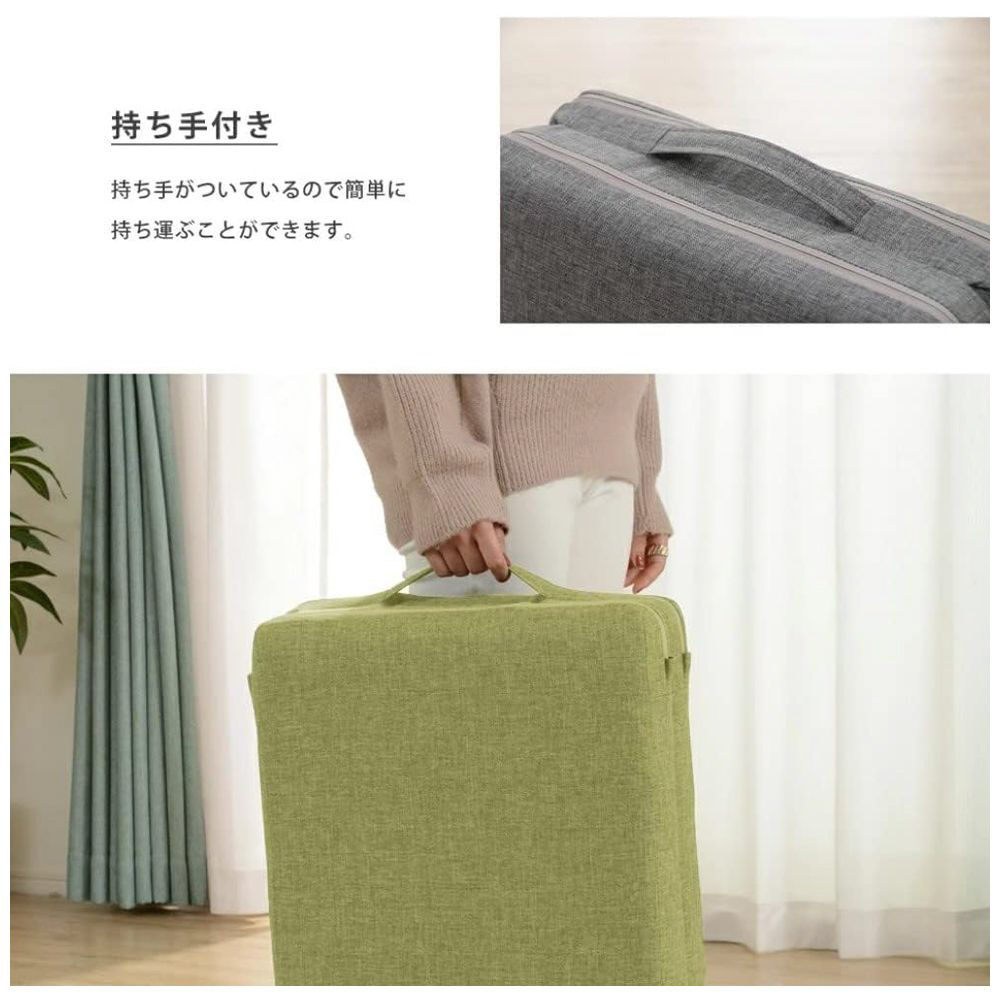 壁にもたれさせて座椅子のようにもお使いいただけます。持ち手がついているので、持ち運びも簡単!