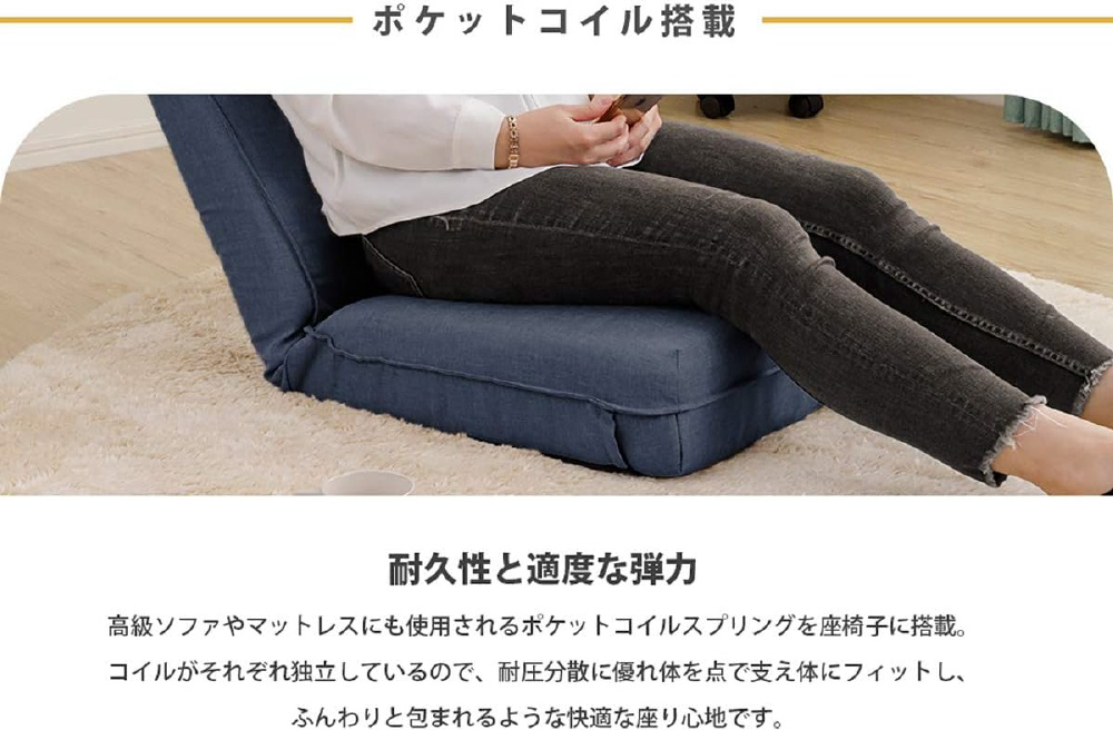 体にフィットし、ふんわりと包まれるような快適な座り心地。座面はポケットコイル仕様。