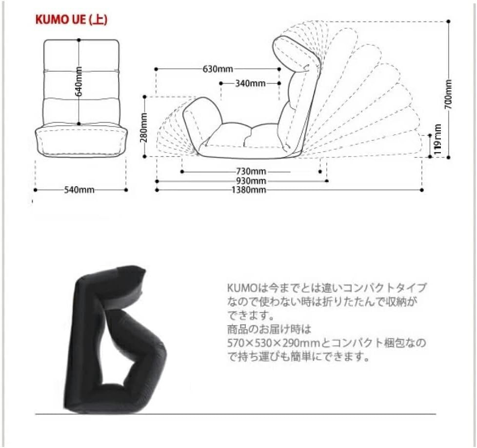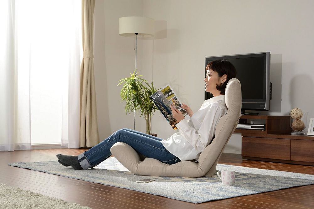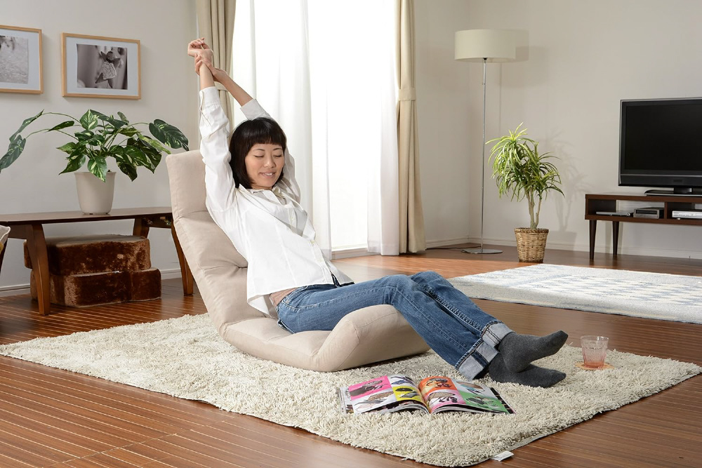 使わない時は省スペースに保管できるリラックスチェア、脚部上タイプ