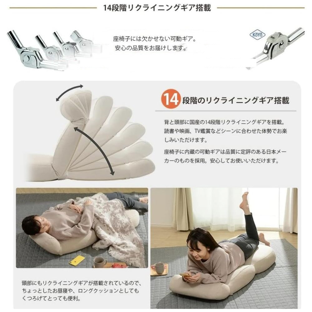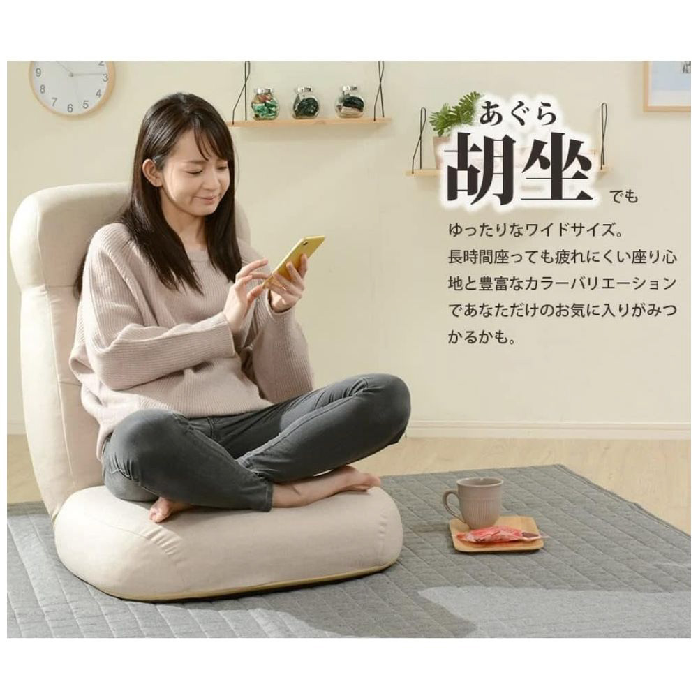 胡坐でもゆったりなワイドサイズ。ヘッドリクライニング機能。