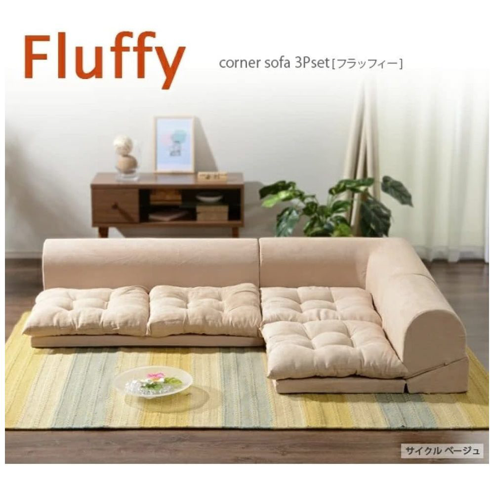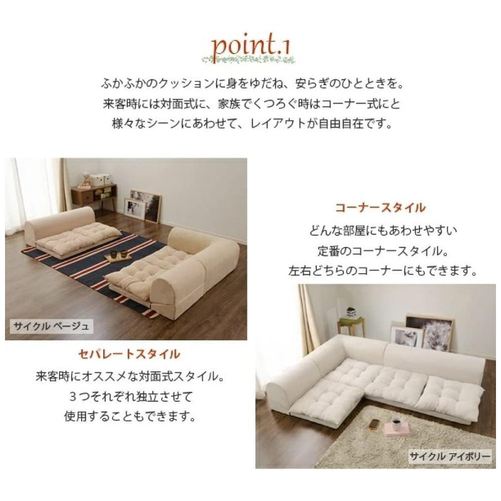 座布団付コーナー3点セット。シングルとダブルはリクライニング機能。