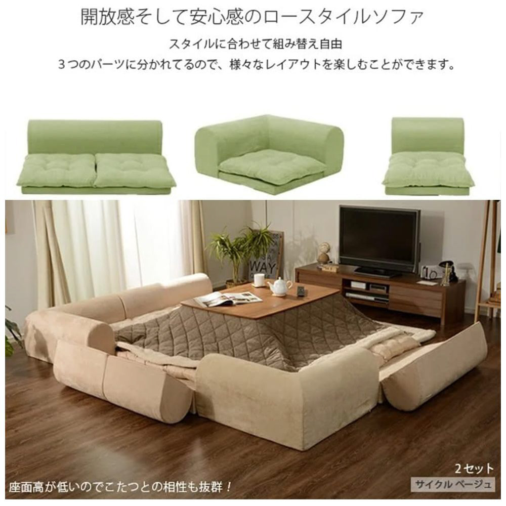 ローソファ3点セット クッション付 サイクルダークブラウン