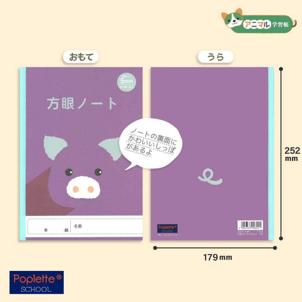 アニマルイラスト学習帳 5mm方眼 ブタ