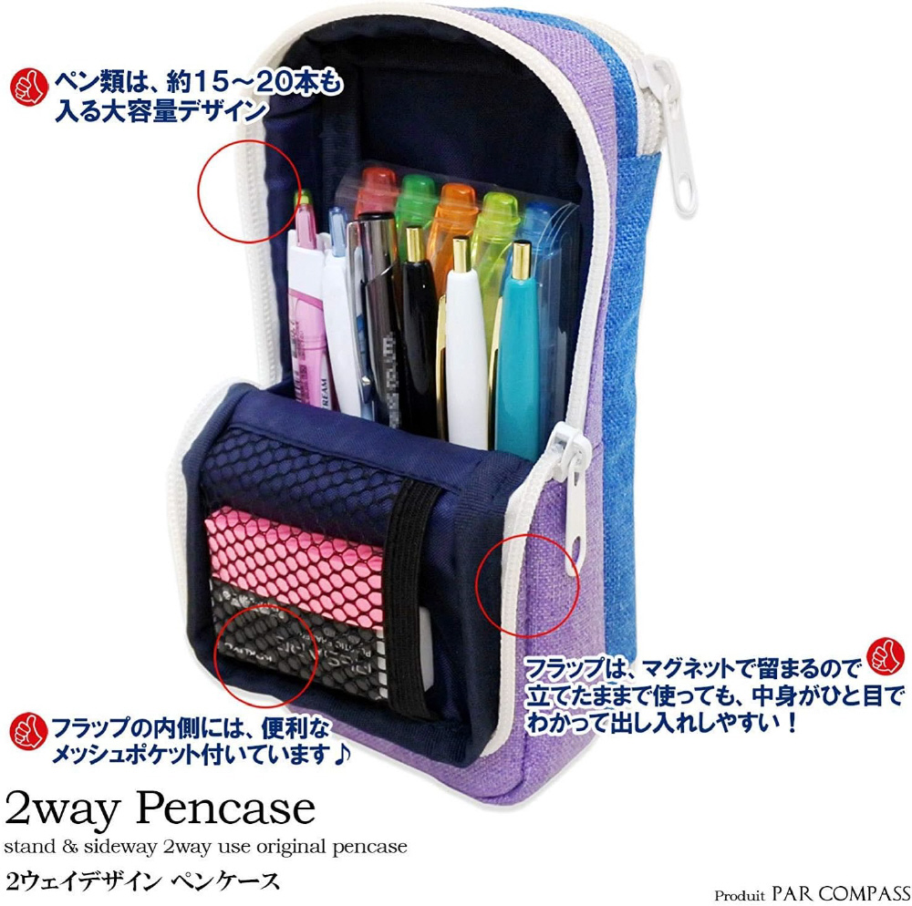タテにもヨコにも使えて、収納力のあるメッシュポケット付きペンケースです。