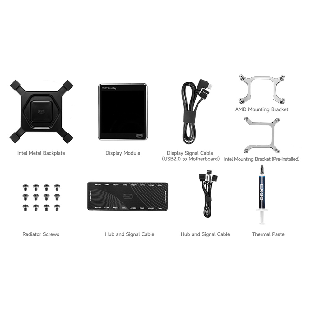CPSブランドの3.4インチIPSディスプレイ搭載、ハイエンドクラスの水冷CPUクーラー「DT360-ARGB-WH」360mmラジエーター ホワイト。