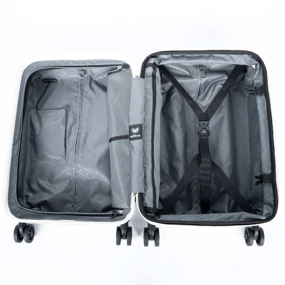 mobusコラボ、前輪ストッパー機能搭載の拡張スーツケース