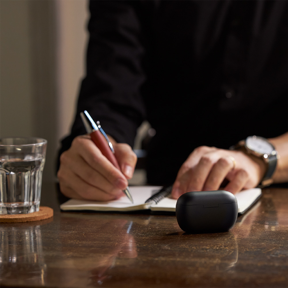 さらに、耳の裏側に位置する、耳に沿って広がる形状の筐体が圧力を分散することで、長時間の装着でも耳への負担を軽減。