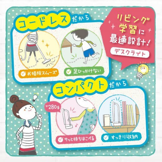 コードレスだから、お掃除スムーズ&足ひっかける心配なし!