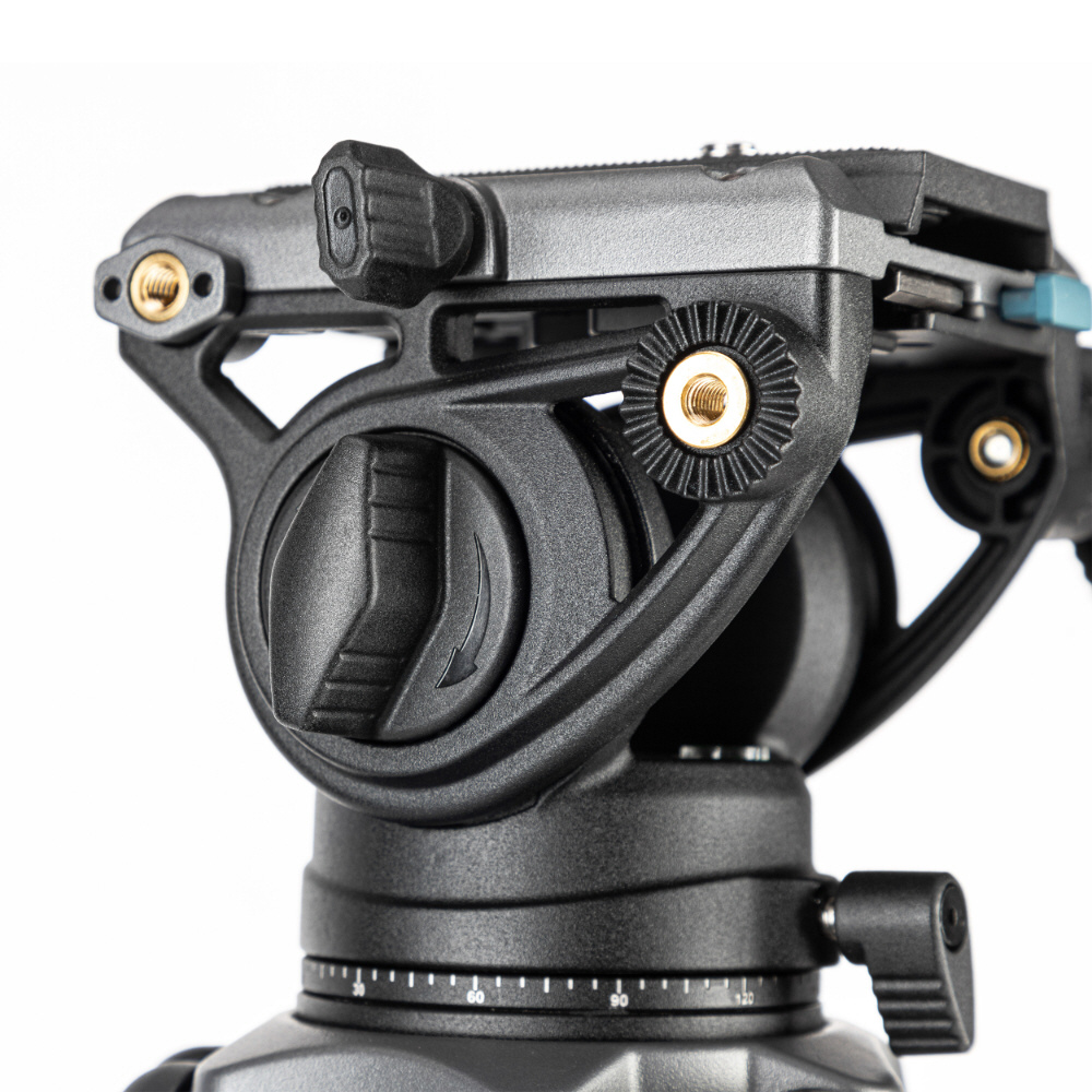 脚部はツインチューブ式の3段伸縮で捩れに強く、ミッドスプレッダーにより安定性を高め、脚の開く角度を調整できます。また、高機能なビデオ雲台はパンやティルトの動きがスムーズで、クイックリリースプレートはDJI RONINシリーズと互換性があります。