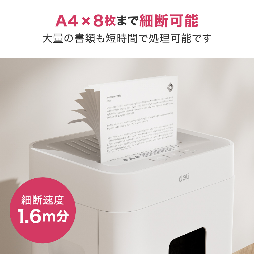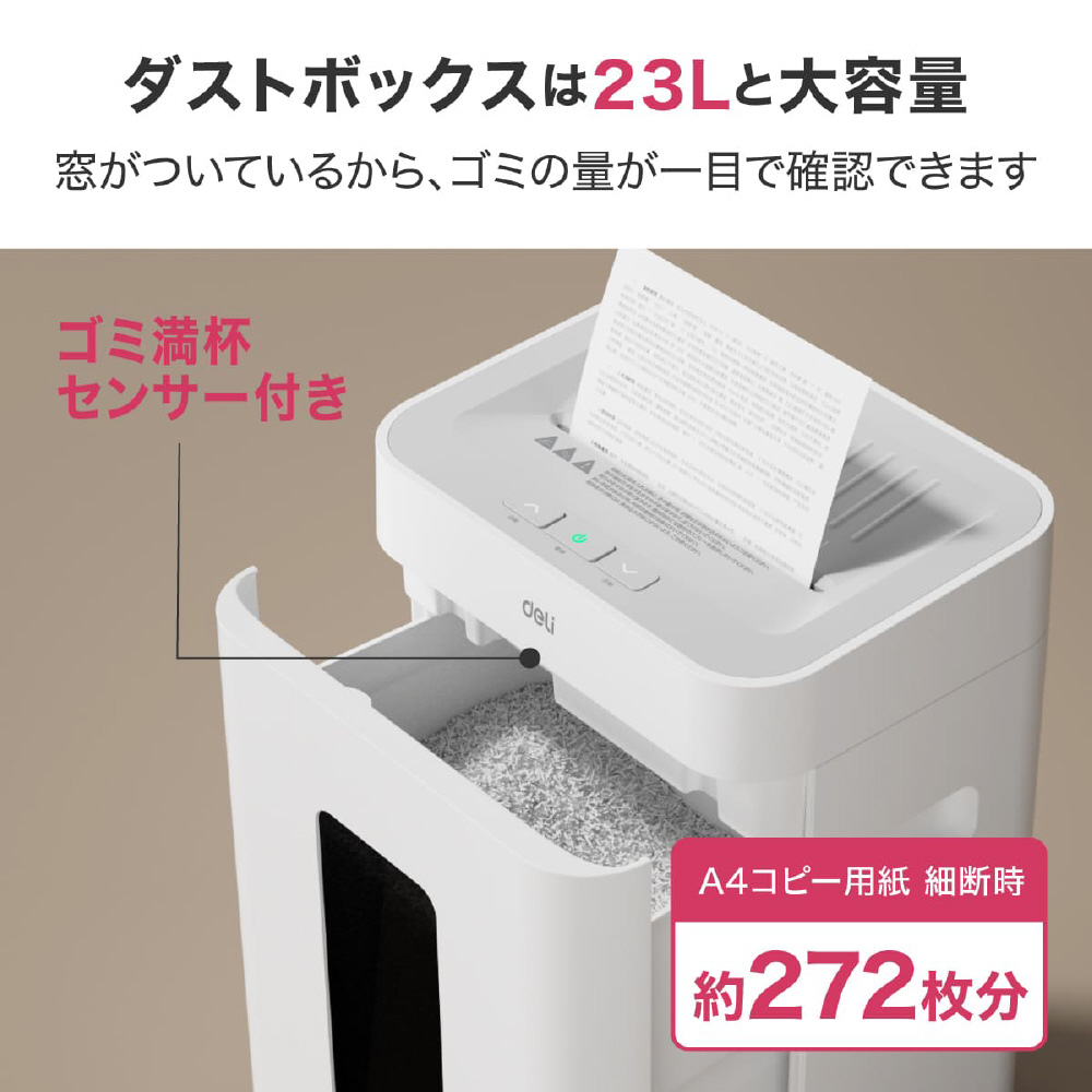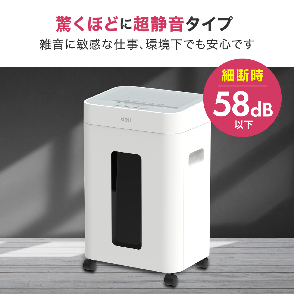 静音A4サイズ据え置型シュレッダー deli ホワイト T058 [マイクロカット /A4サイズ]