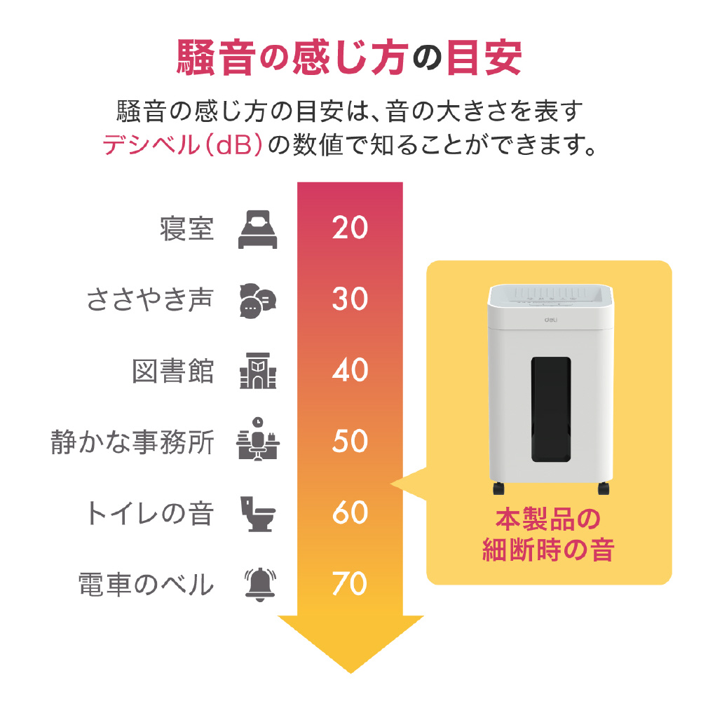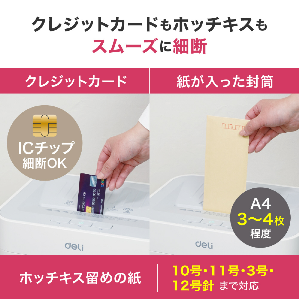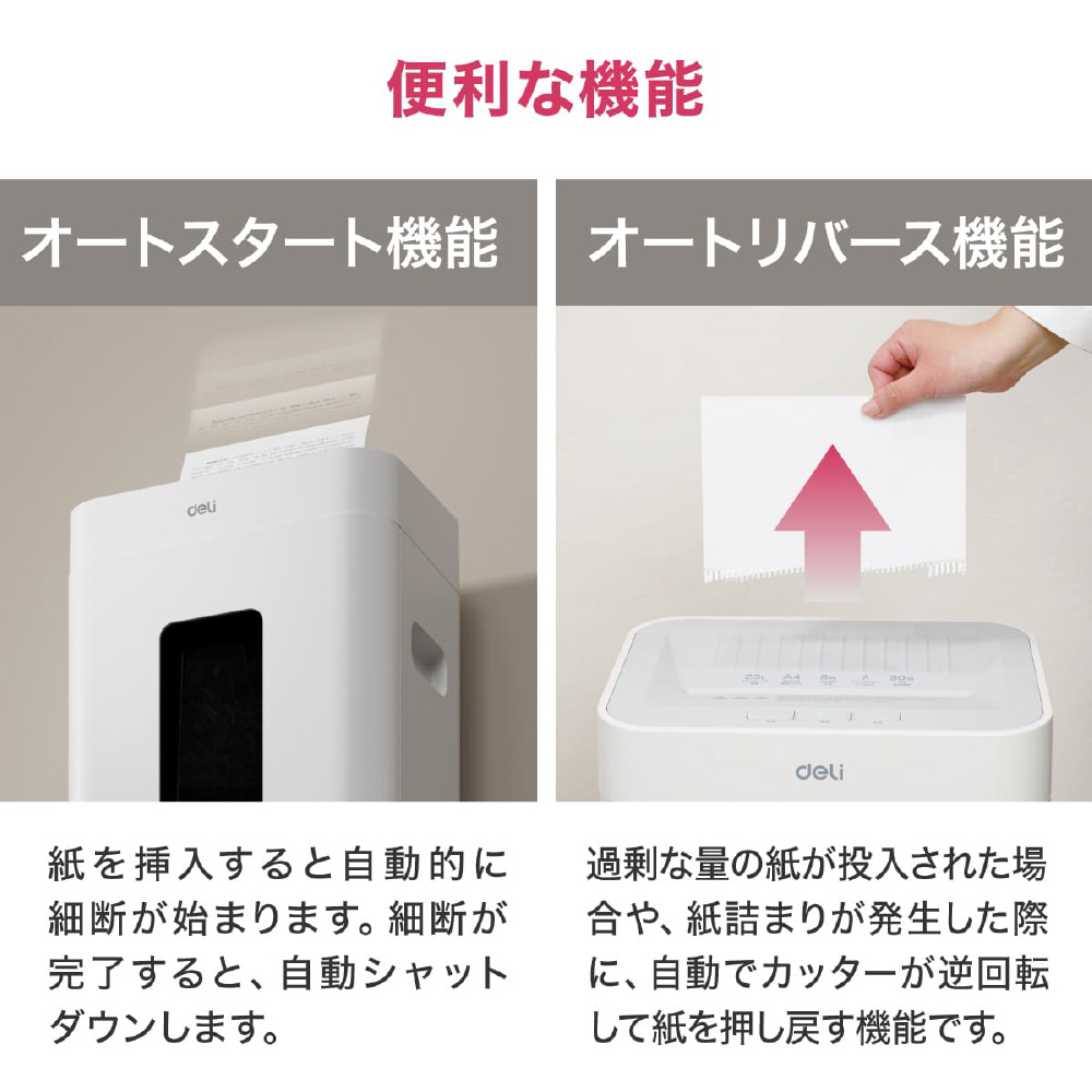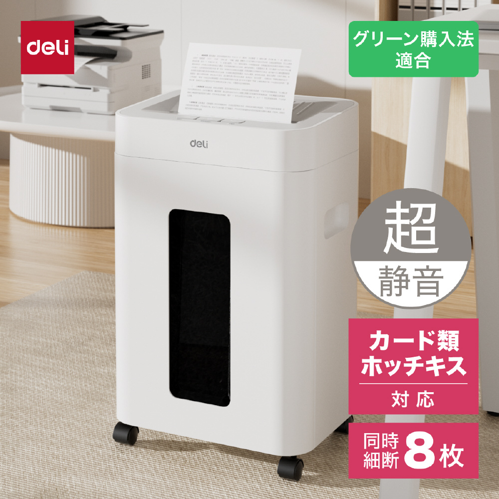 静音A4サイズ据え置型シュレッダー deli ホワイト T058 [マイクロカット /A4サイズ]