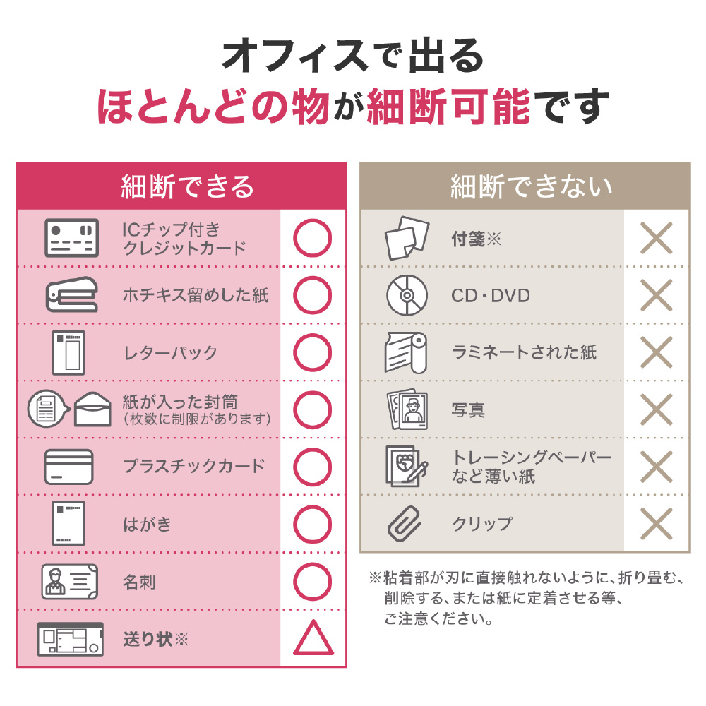 その他機能 カード類やホッチキス付の書類も細断