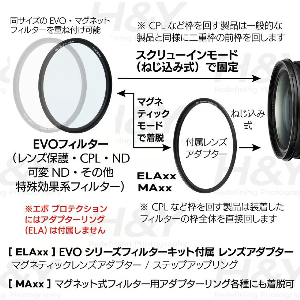 ■EVOシリーズ CPLフィルターは、ねじ込み式とマグネット式の両方に対応した多機能なサーキュラーPLフィルターです。