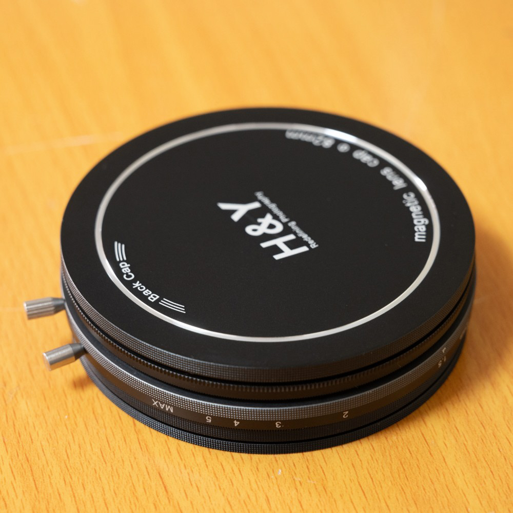 ▲同じくマグネット式のレンズキャップと組み合わせて使用することで、フィルター単体をケース不要でコンパクトに保護・携行できます。