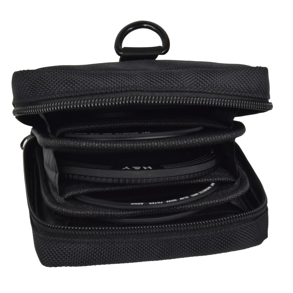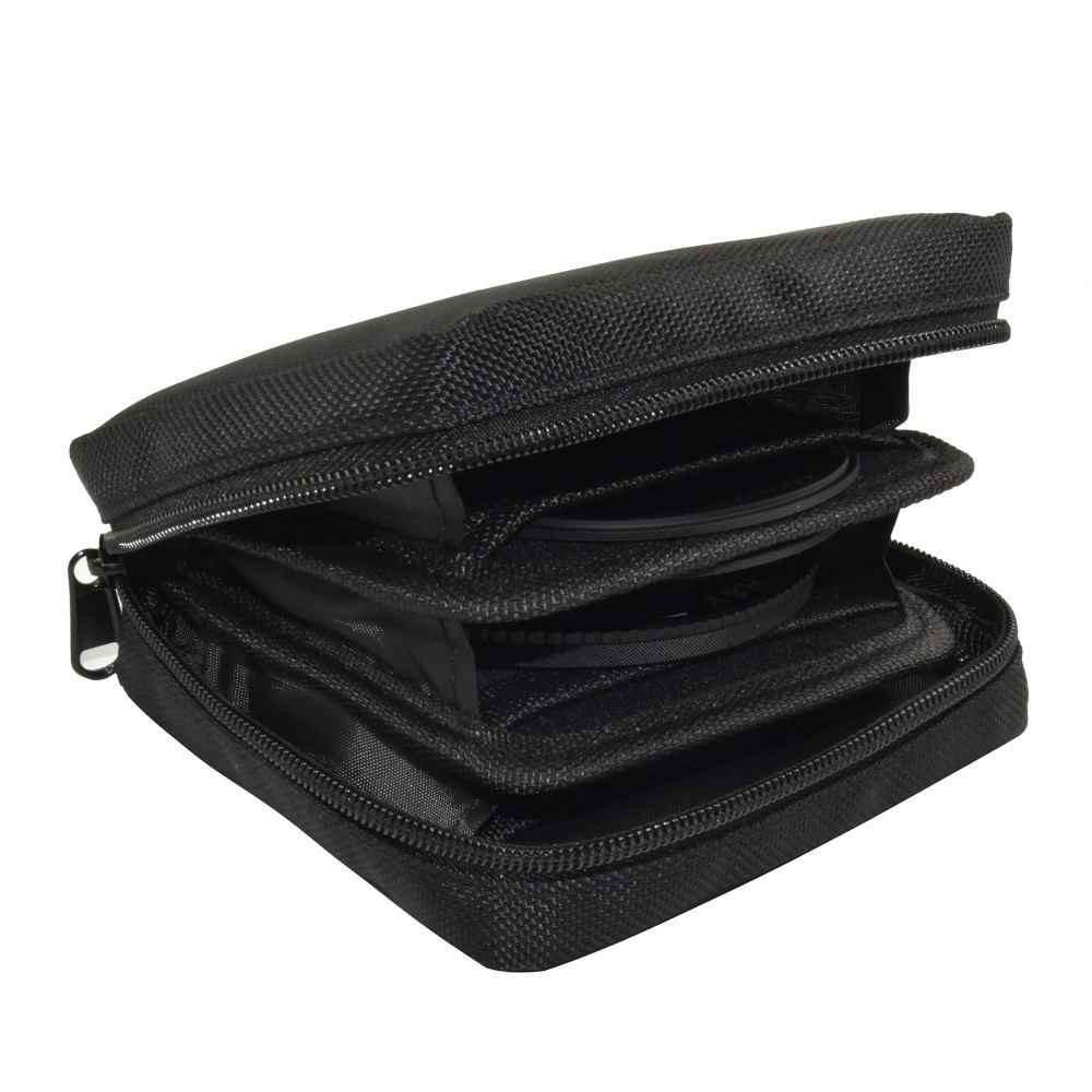 ■内部は3つの仕切りがあり、それぞれ3つのポケットを備え、最大9枚のフィルターを分けて収納可能です。