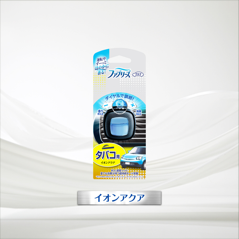 ダイヤルで調節!使用期間: 約6週間(開封時設定での試験時の状況に基づく。車内の環境や運転状況等により異なります。)夏でも効果が持つ超持続モード搭載^イージークリップタバコ用 イオンアクア^香り控えめ設定において 車用消臭芳香剤