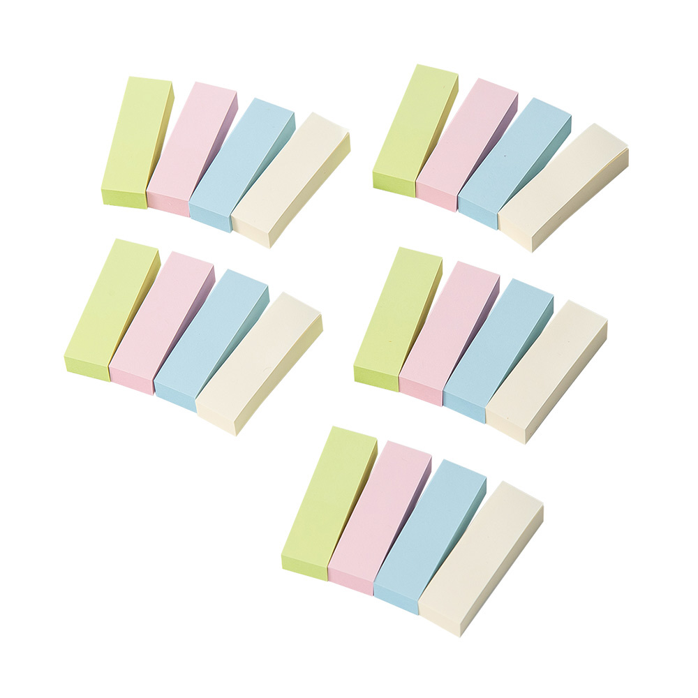 メモ内容に合わせて選べる4サイズ。仕分けに便利な4色アソート大容量の再生紙ふせんです。<BR>(半角)ブルー・グリーン・ピンク・イエロー 100枚×20冊<BR>(半角)ふせんのサイズ:50x15mm<BR>(半角)材質:再生紙