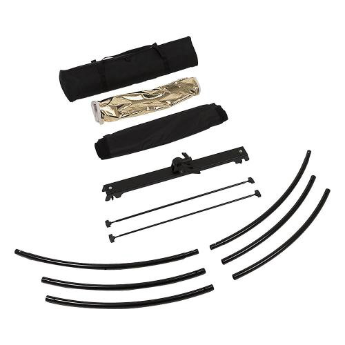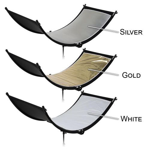片面白/片面金の布が同梱されており、ベルクロで取り付けることでそれぞれの色のレフ板に切り替えることができます。
