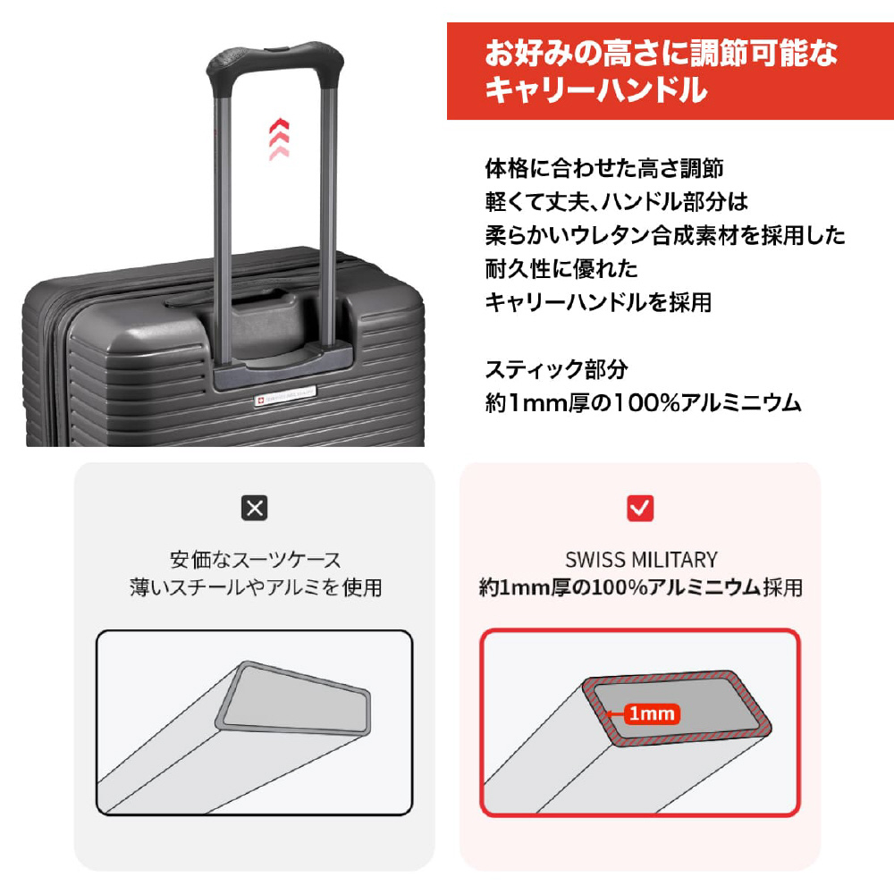 MOTIVAN(モティバン) スーツケース 68cm Lサイズ(無料預入)78L SWISS MILITARY カーボングレー SM-H326P GRAY [TSAロック搭載]