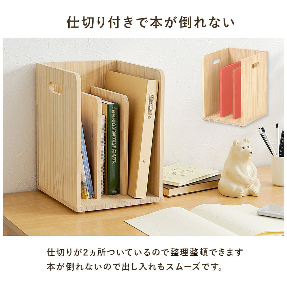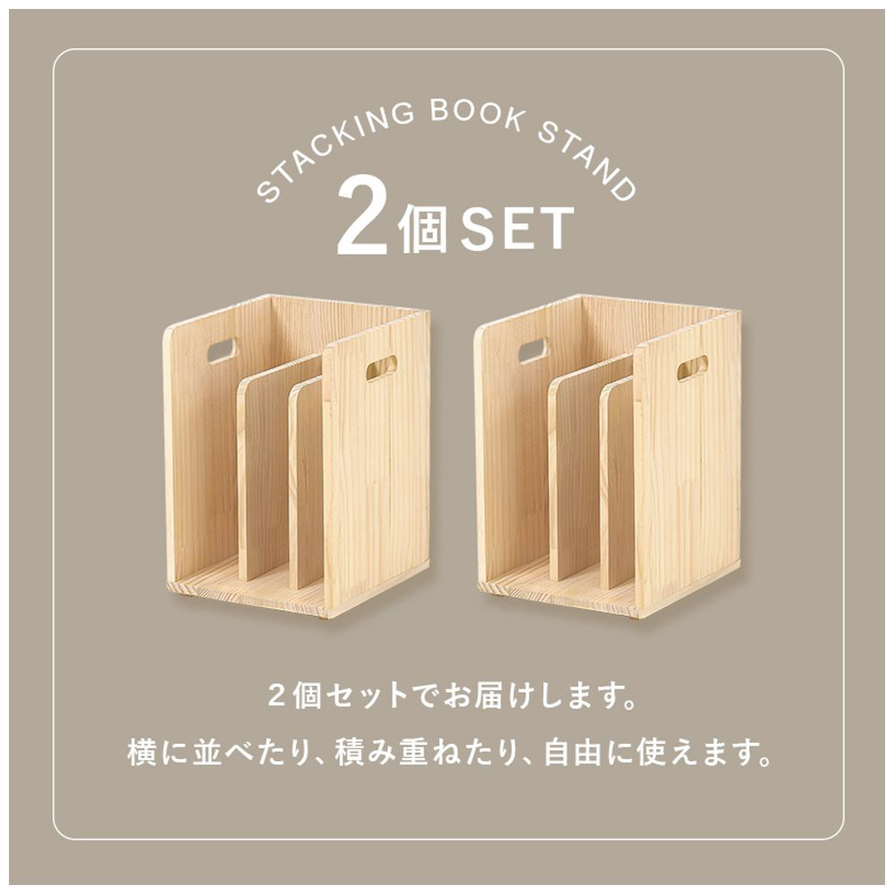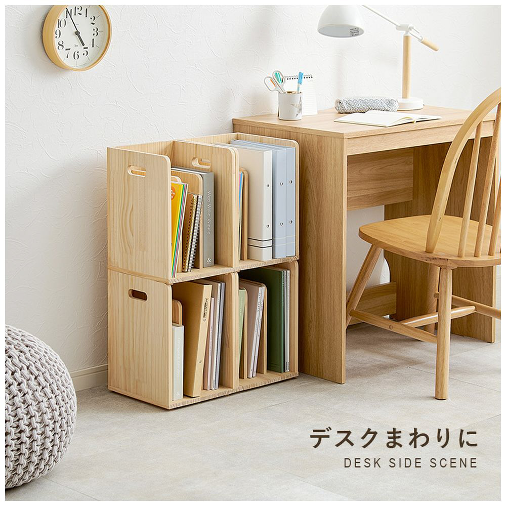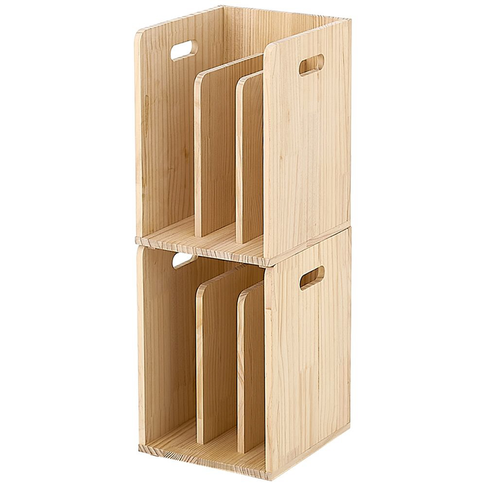 仕切りが付いて本・雑誌をしっかり収納。重ねて使えます。天然木パイン材を使用しており、無塗装なので経年変化を楽しんだりDIYでアレンジしたりできます。