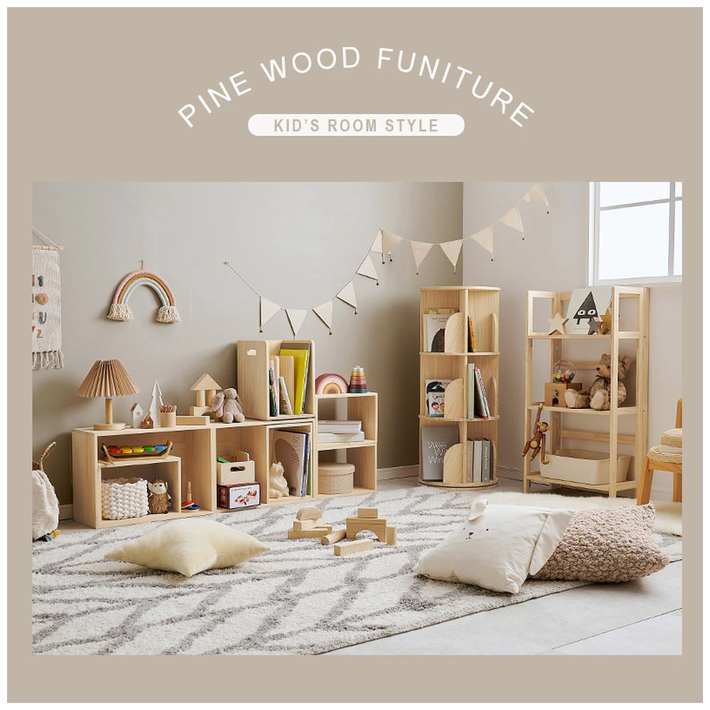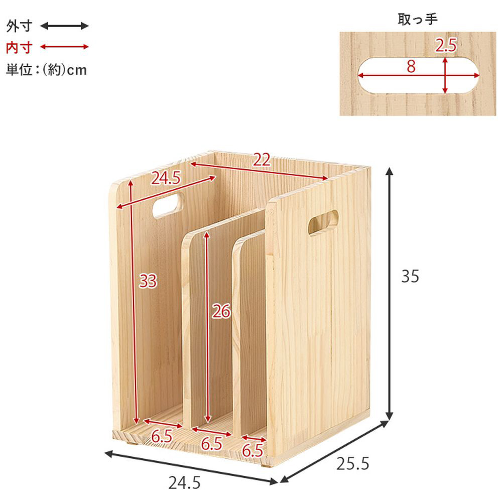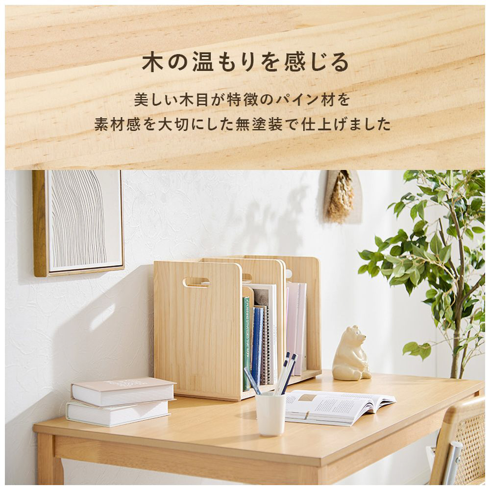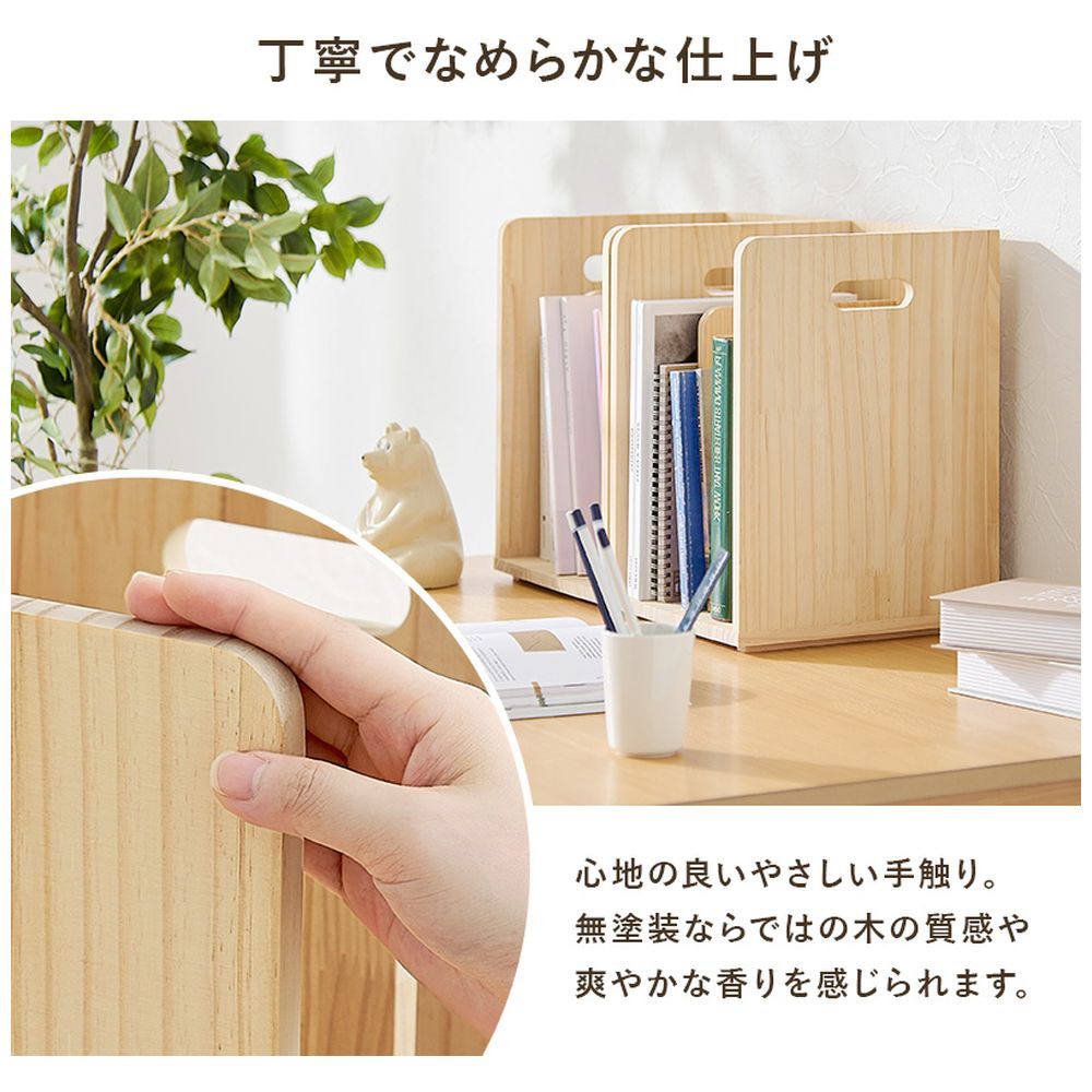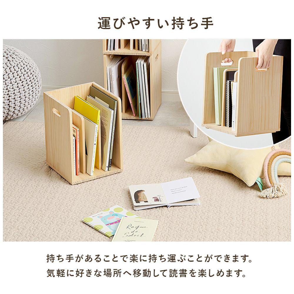 仕切りが付いて本・雑誌をしっかり収納。重ねて使えます。天然木パイン材を使用しており、無塗装なので経年変化を楽しんだりDIYでアレンジしたりできます。