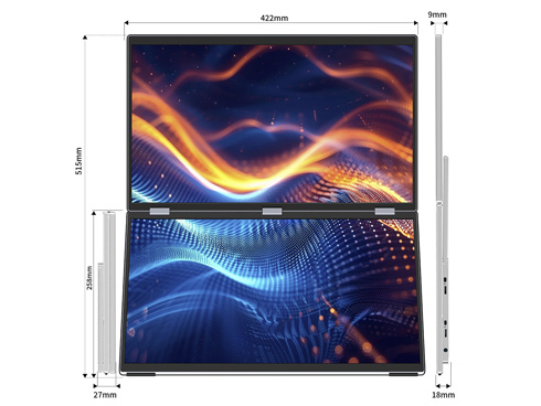 18.5インチの大画面IPSパネルを2枚搭載し、フルHD(1920×1080)解像度に対応したデュアルモバイルディスプレイです。