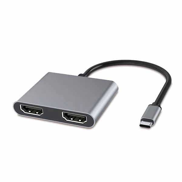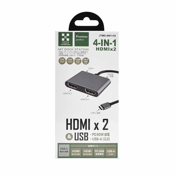 映像変換アダプタ [USB-C オス→メス HDMIx2 /USB-A+USB-Cメス給電 /PD60W] 4K対応(Chrome/Android/iPadOS/iOS/Mac/Windows11対応) グレー JTMD-4IN1-H2