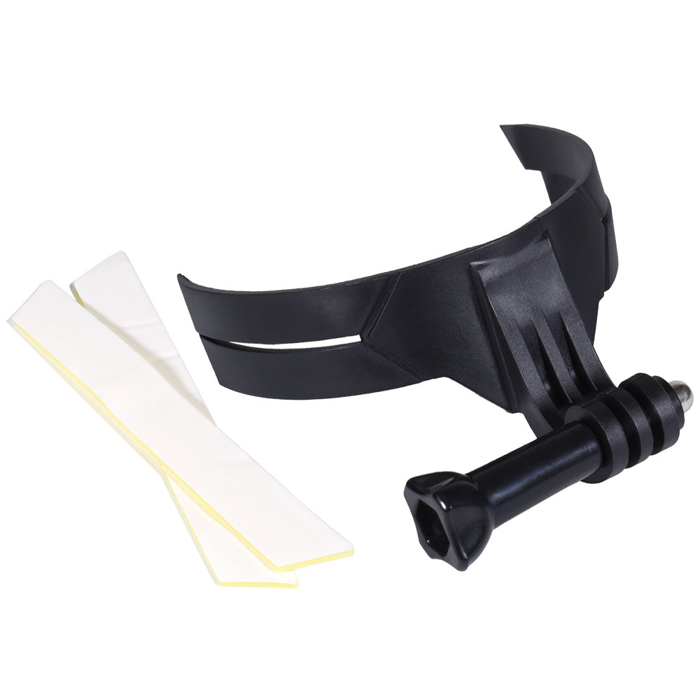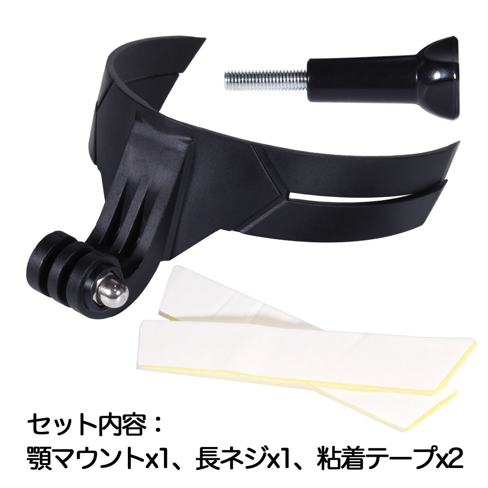 ヘルメットの顎部分に粘着テープで貼り付け、アクションカメラを取り付けるマウントです。