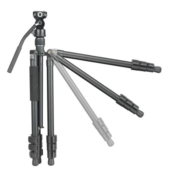 取り外し可能なビデオ雲台VEO PV-12を付属した、軽量でコンパクトなトラベルビデオ三脚です。