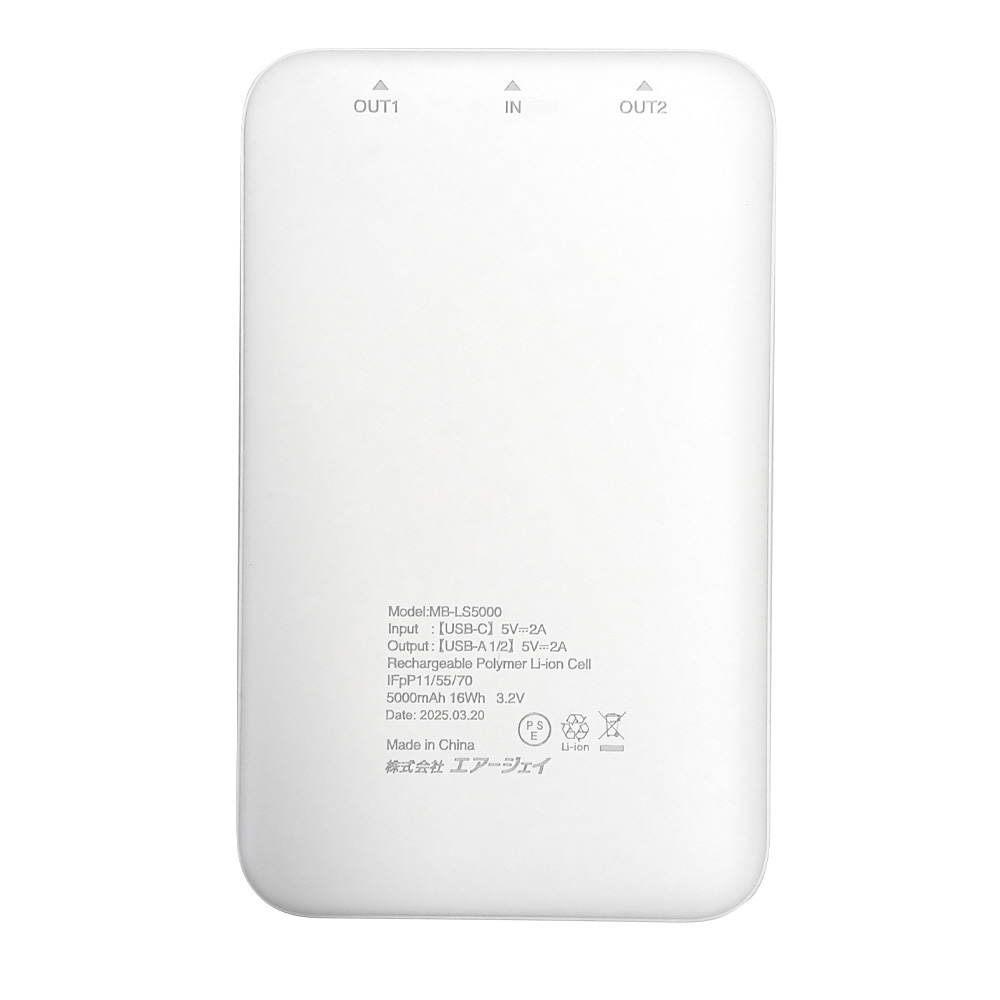 リン酸鉄モバイルバッテリー5000mAh ホワイト MBLS5000WH