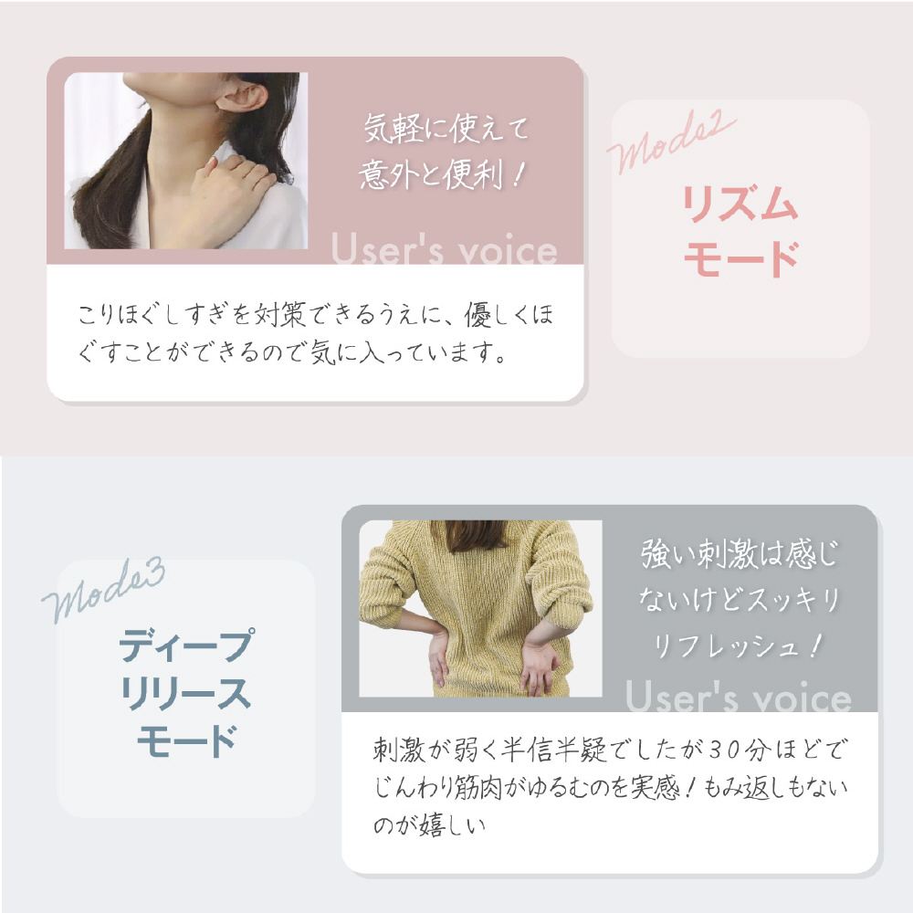 シンプルモード、リズムモード、ディープリリースモードの3モード搭載