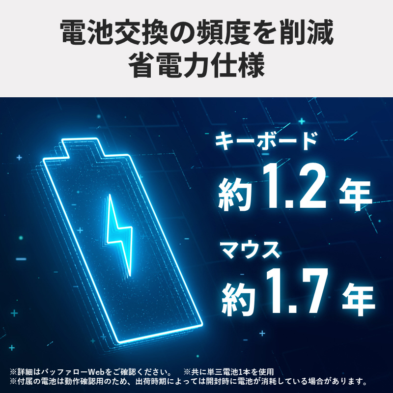 ※自然放電を考慮せず。アルカリ乾電池を使用。1日8時問のバソコン操作のうち、2時間をキーポードに割り当てた場合。