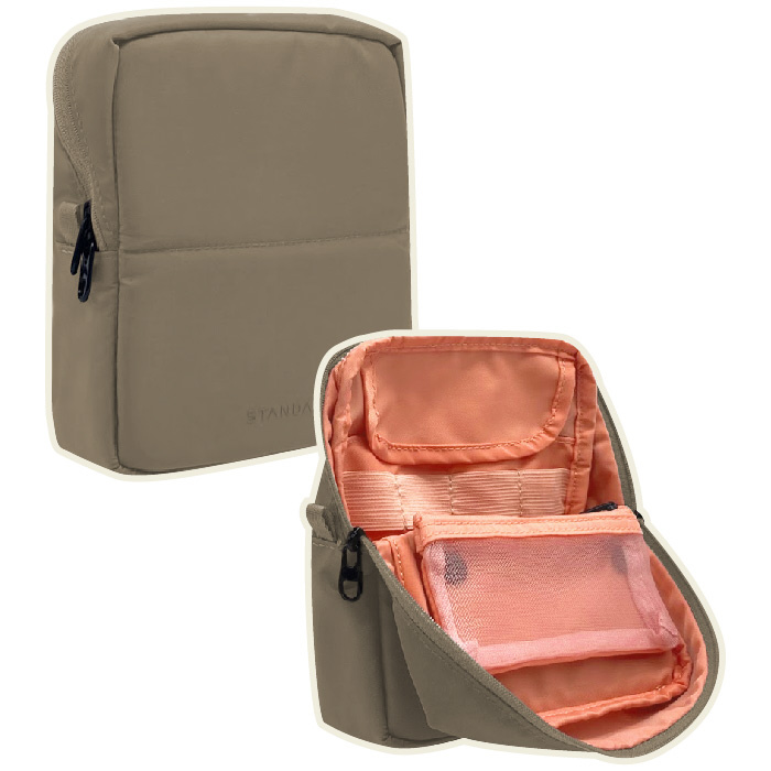 STANDY スタンデイ ハンギングポーチ グレージュ/サーモンピンク BE 旅行 トラベルポーチ 吊り下げポーチ コスメポーチ マルチケース マルチポーチ ガジェットケース 化粧品 洗面用具 文房具 裁縫道具