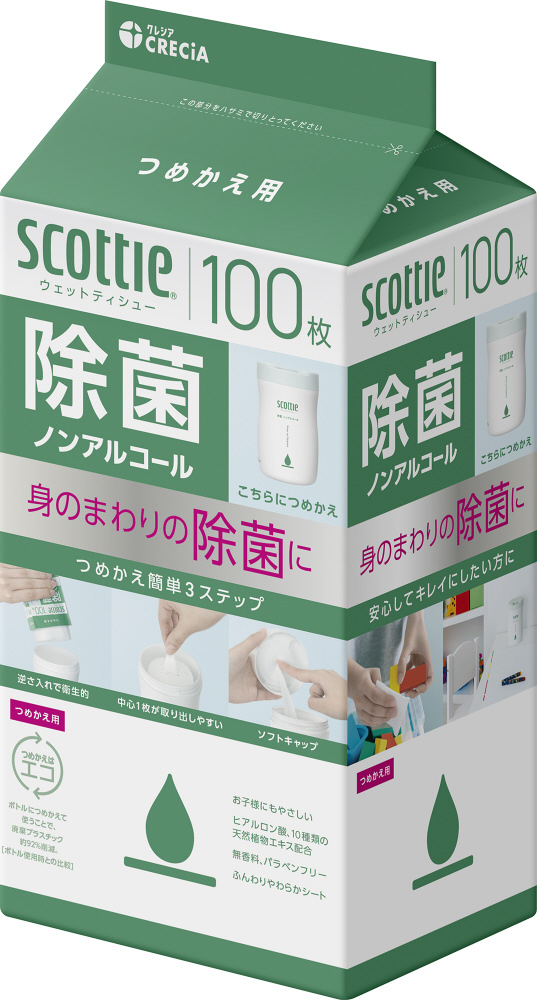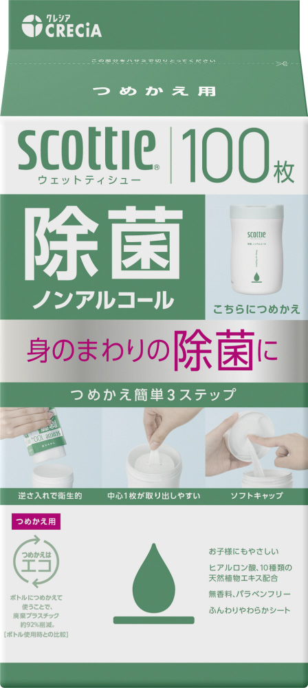 スコッティ ウェットティシュー 除菌 ノンアルコール 100枚 つめかえ用