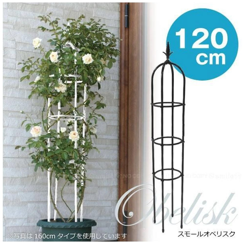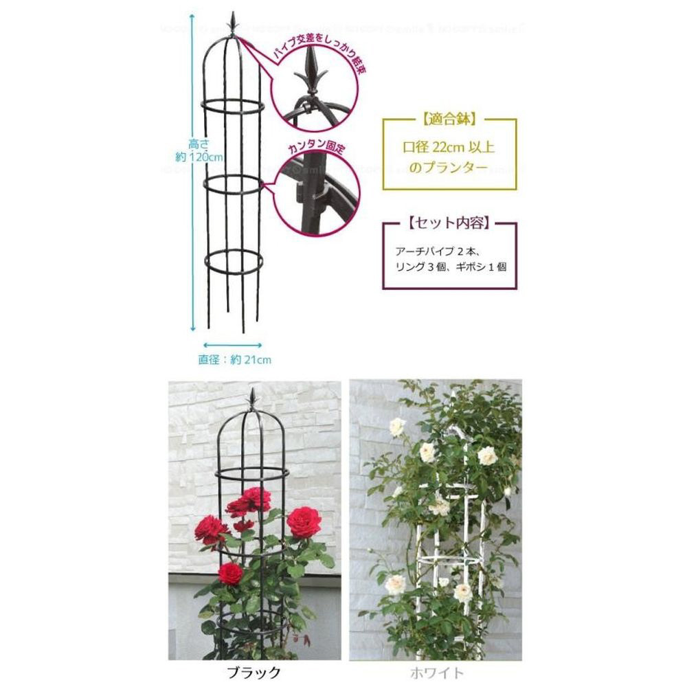 組み立て簡単、おしゃれなブラックのオベリスク。バラやツル性植物を美しくサポートします。高さ120cm、22cm以上の鉢に最適です。