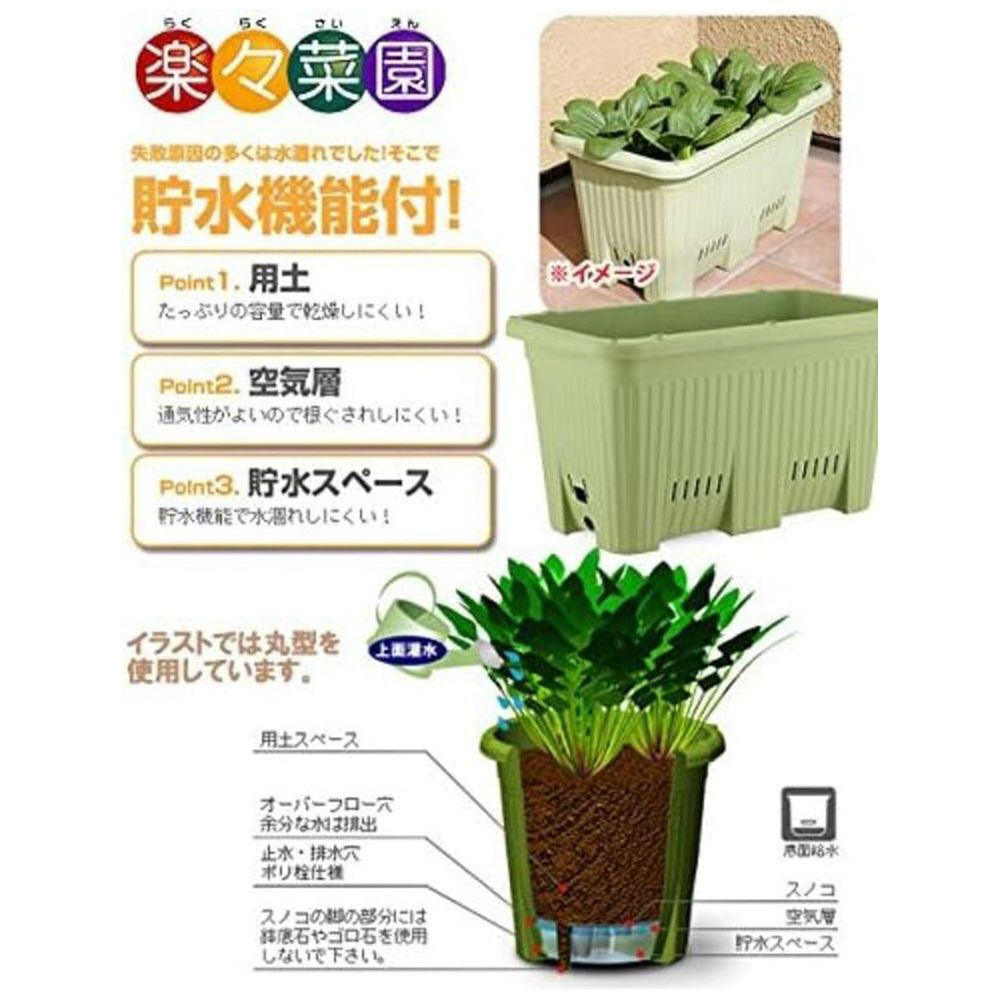 底面給水機能付きの大型プランターで、野菜の水やりを軽減できます。