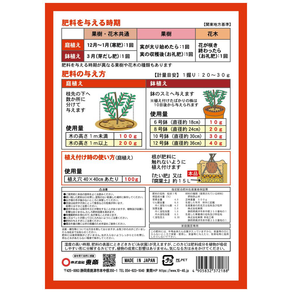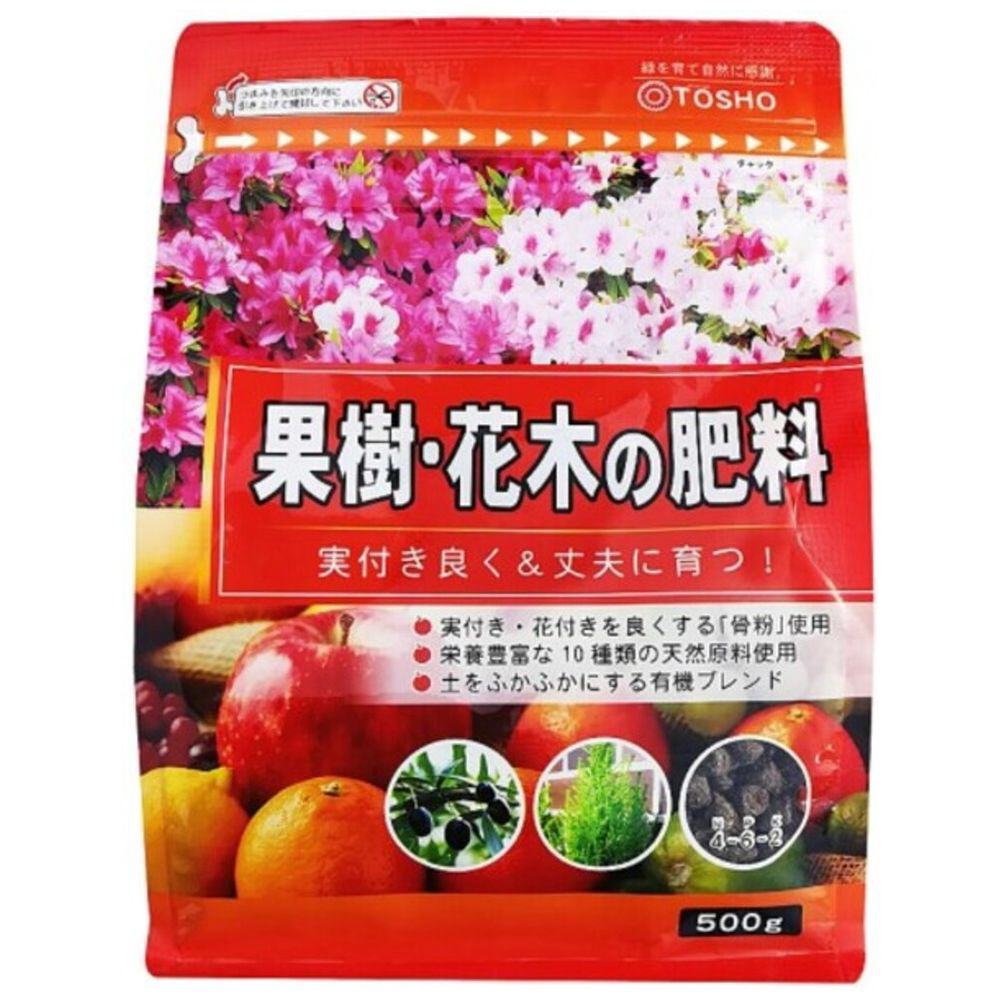 骨粉配合で実付き・花付きを促進。10種類の天然原料による有機質肥料。果樹・花木を丈夫に育てる