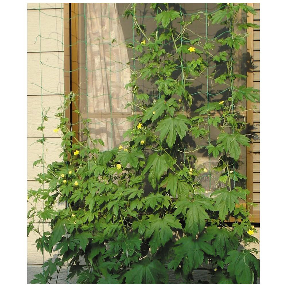 夏の暑さ対策に最適。丈夫なロープ付きの緑のカーテンネット。10cm角目でつる性植物栽培に最適。日差しを和らげ、省エネにも貢献します。