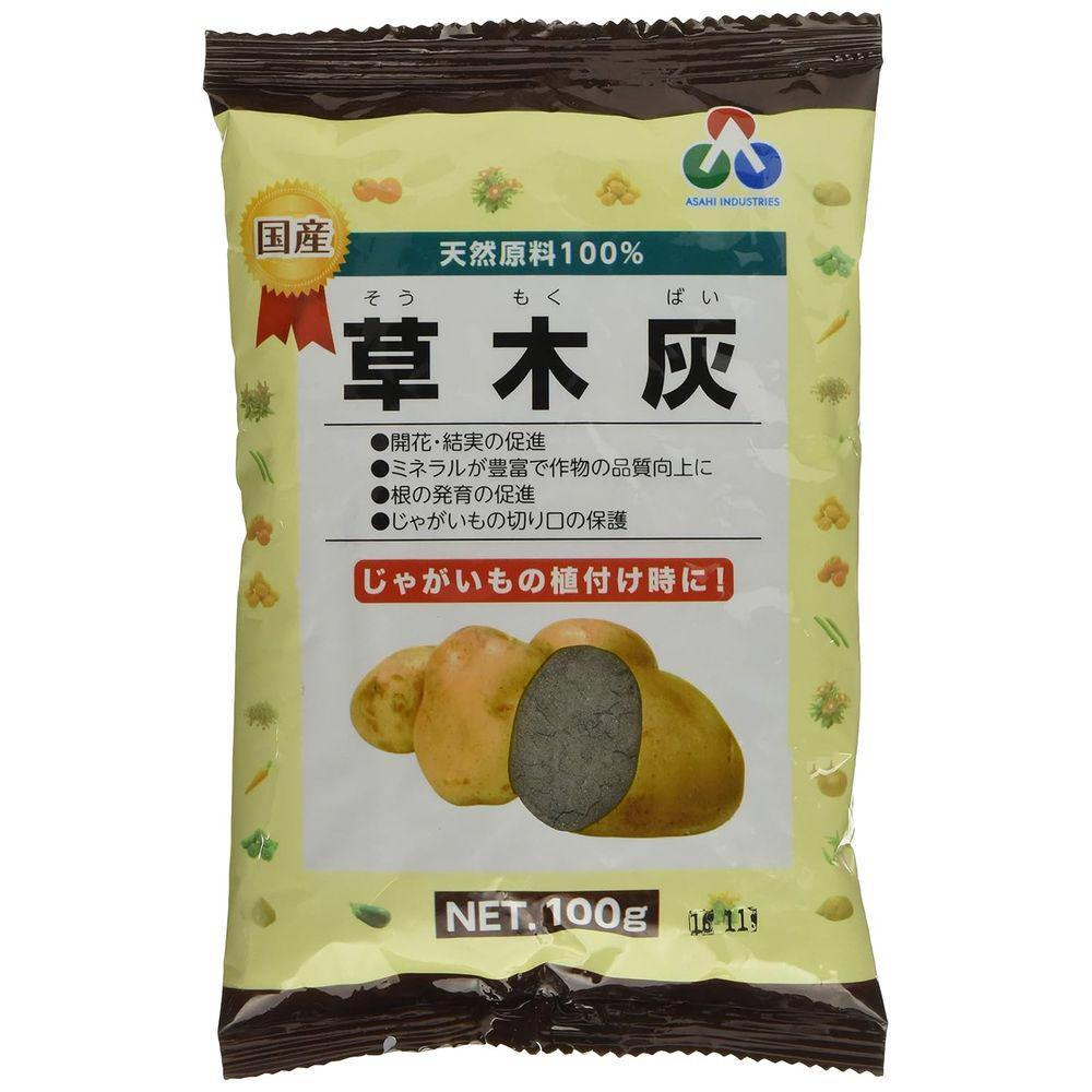 草木灰100%のアルカリ性肥料。ミネラル豊富で、作物の品質向上に効果的です。イモ類の追肥やジャガイモの切り口保護にも最適です。