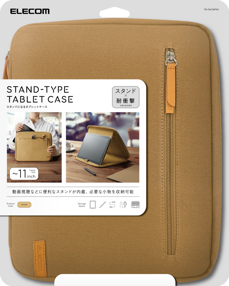 タブレットPC対応 [〜11インチ] タブレット汎用インナーケース スタンドタイプ カーキ TB-11ACMFKH