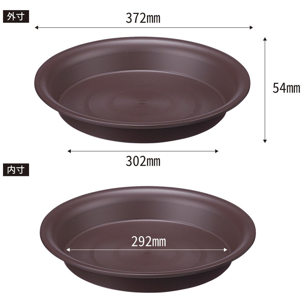 鉢底の土や泥をキャッチ。環境に優しいリサイクル素材使用の受け皿です。
