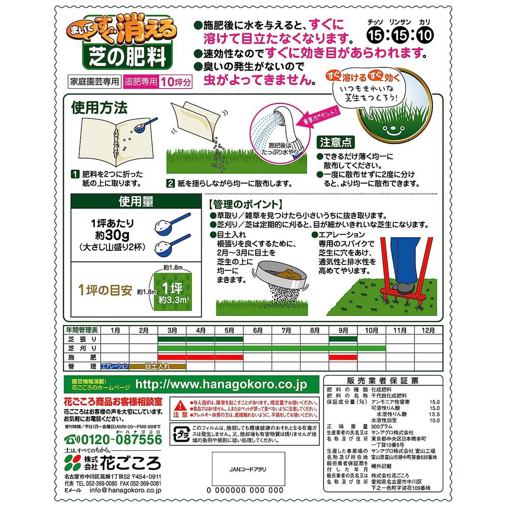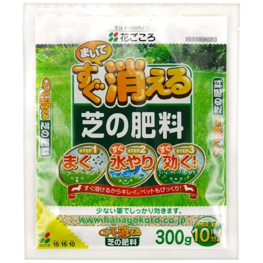 花ごころの「まいてすぐ消える芝の肥料」は、300g入りで手軽に使える芝生の肥料です。