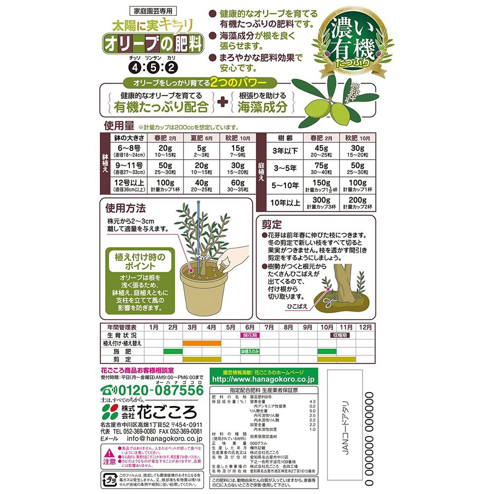 有機質たっぷりで、オリーブの生育に最適な肥料です。